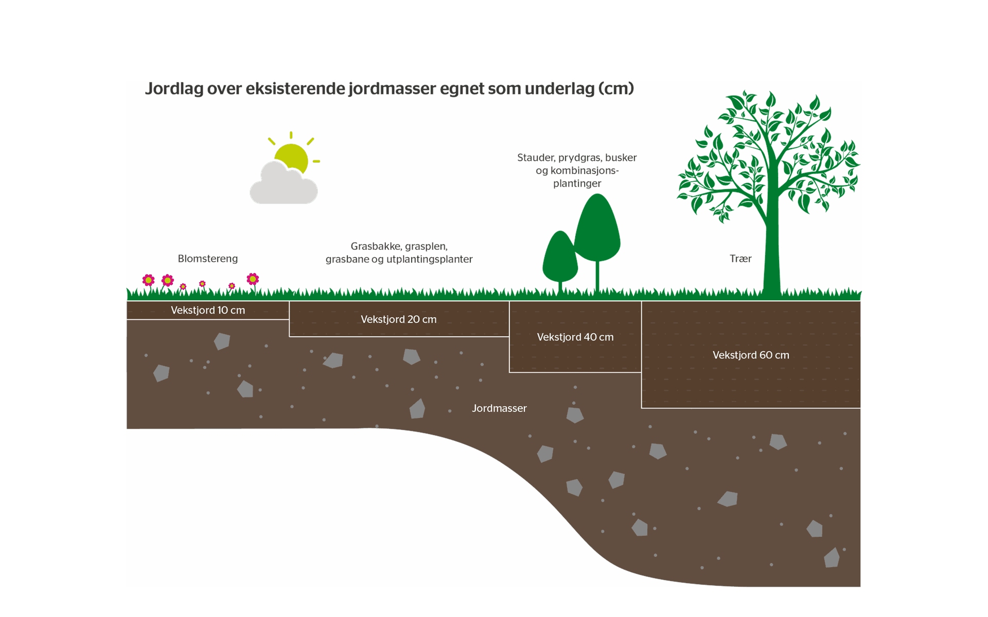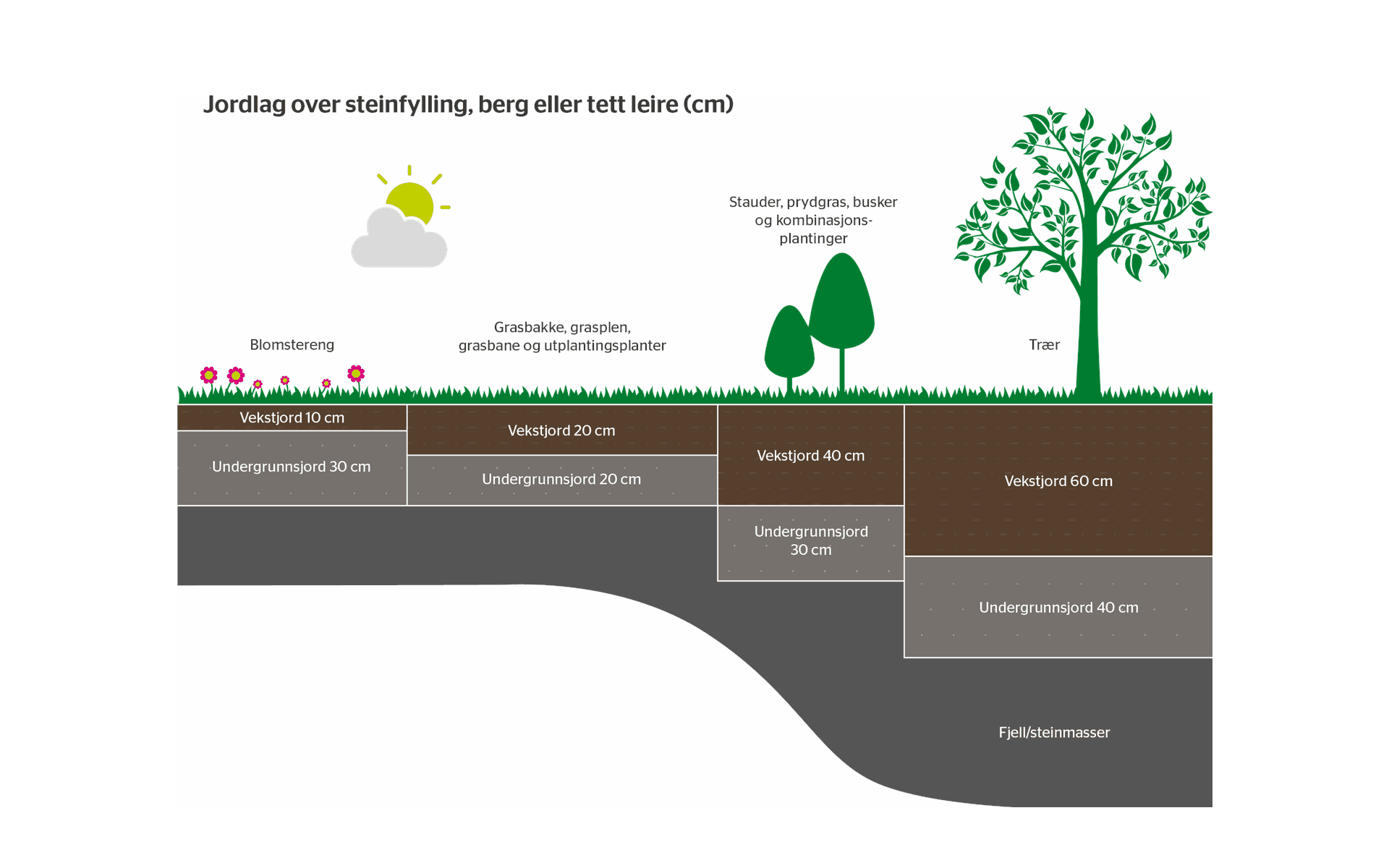 Anbefalte jordtyper: . som undergrunnsjord.